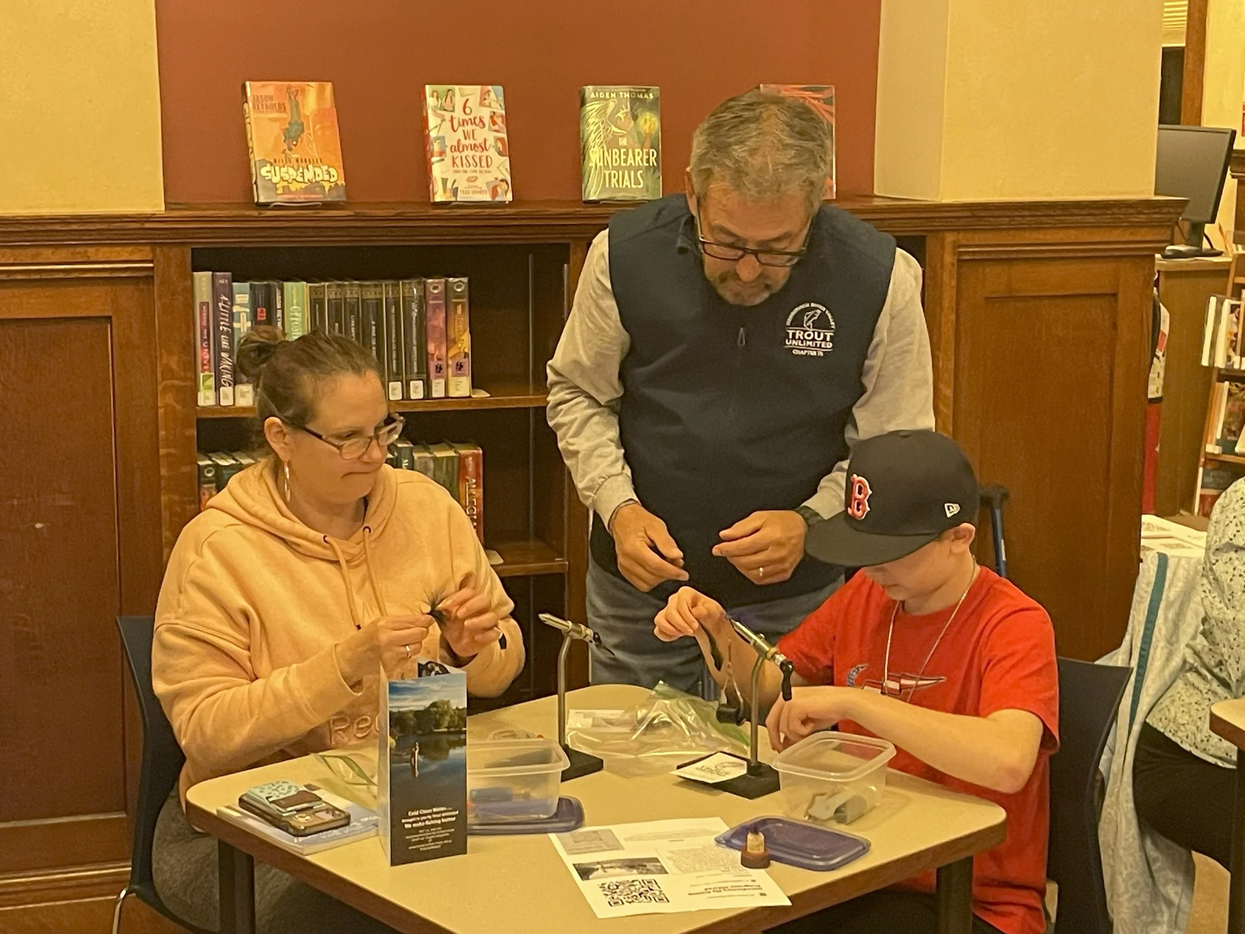 Fly tying the “Wooly Bugger” at the Aaron Cutler Library in Litchfield.